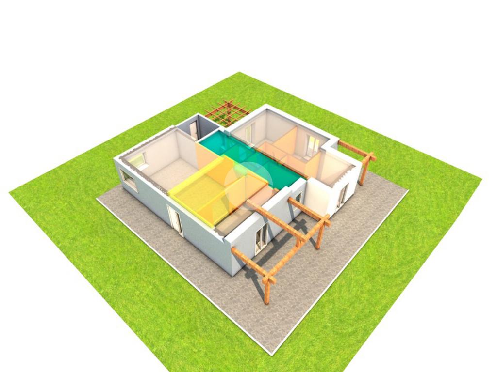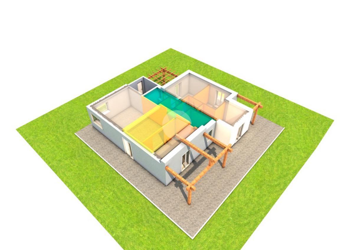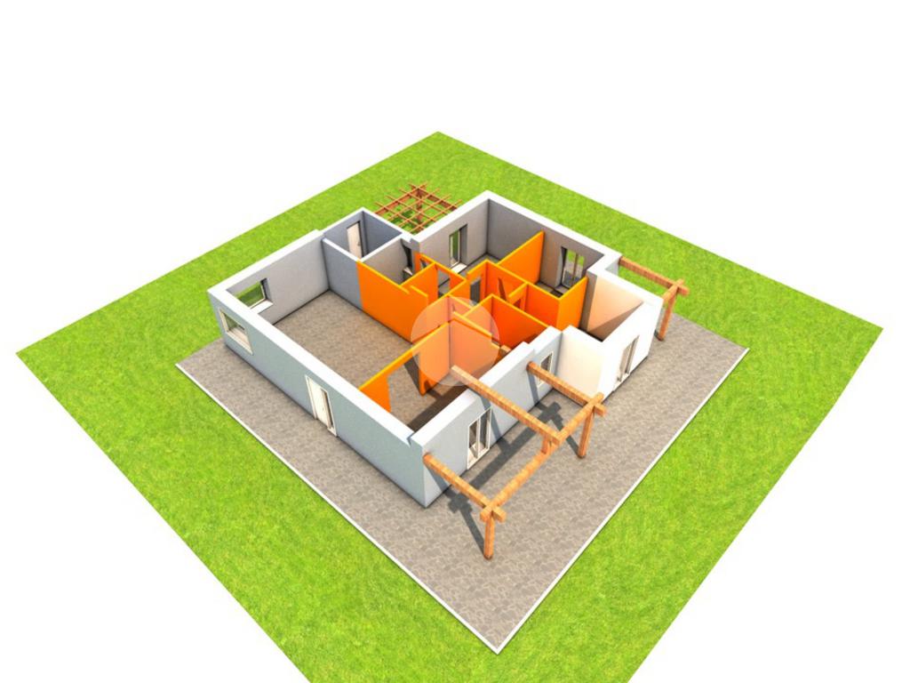 Le soluzioni saranno indipendenti sui quattro lati e avranno un box auto di capienza doppia. Saranno composte da una zona giorno open space con cucina e soggiorno in ambiente unico, che annuncia l'ingresso alla casa, e una zona notte, composta da tre camere da letto, di cui due singole ed una matrimoniale con bagno privato e con un ulteriore spazio che si può adibire a cabina armadio o studio. Ogni ambiente sfocia sull'esterno, uno spazio verde di modeste dimensioni, tramite portici e pergolati.