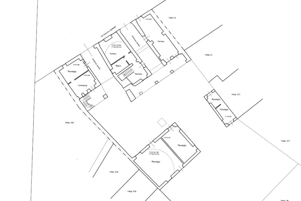 La dimora, di circa 400 mq, si sviluppa su più livelli. Al piano terra troviamo una camera matrimoniale con bagno completo attualmente adibita a B&B, un locale hobby di circa 20 mq, lavanderia, cantina, sgabuzzino e una caratteristica taverna con volte a botte; questo livello, con accesso diretto al giardino, si presta perfettamente anche a uso indipendente per ospiti o attività ricettiva.